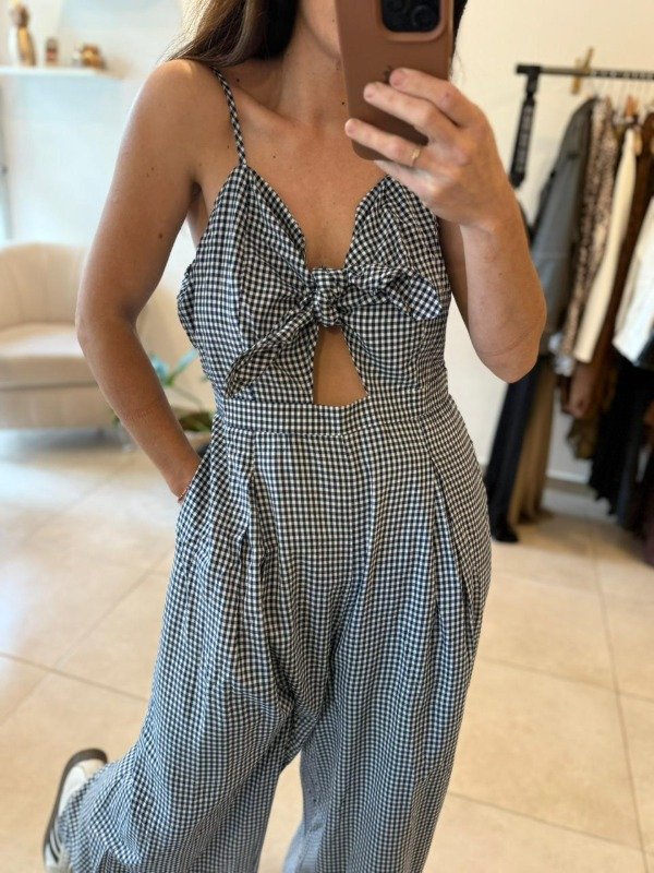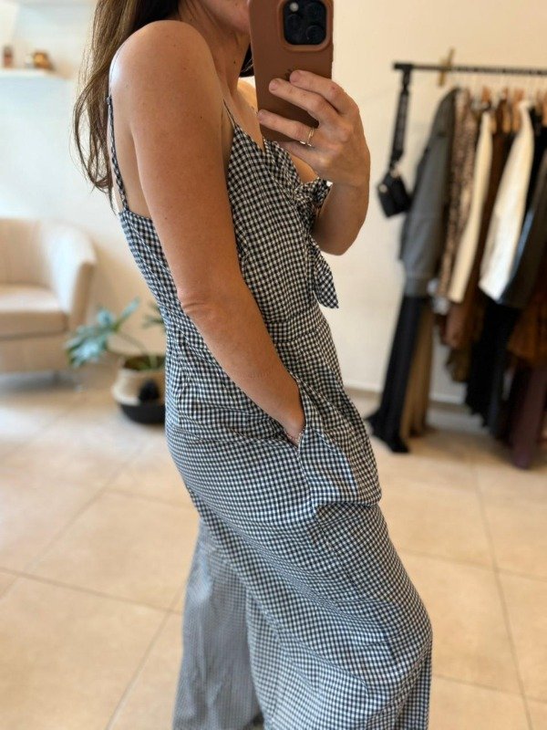 Mono importado de breteles regulables, con elástico lateral, bolsillos y detalle en escote.