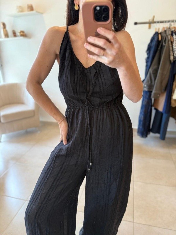 Mono con vivos al tono escote en V. CUenta con lazo y elástico n cintura. Con breteles regulables. Importado. Forrado.