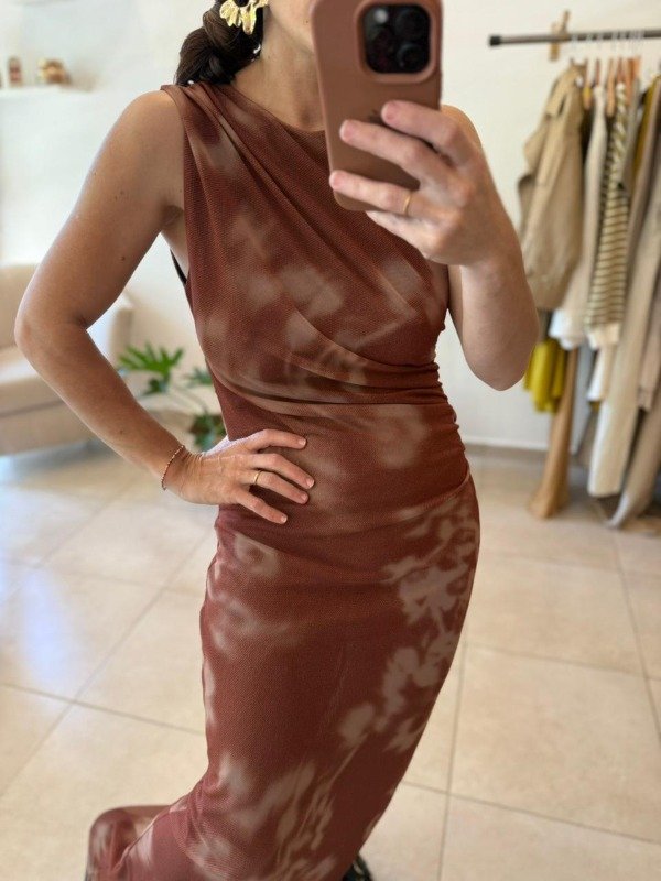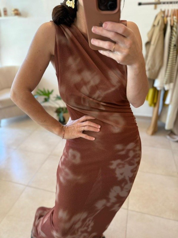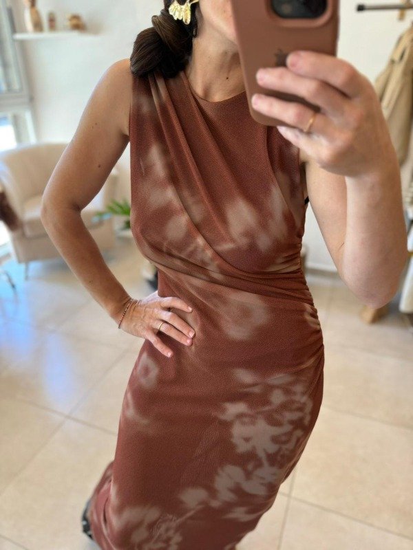 Vestido de microtul con frunces laterales, forrado.