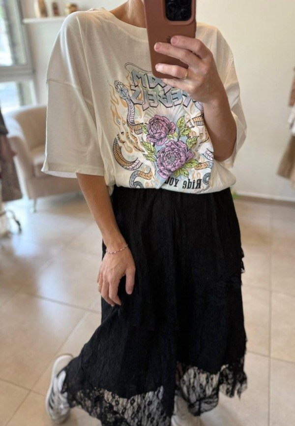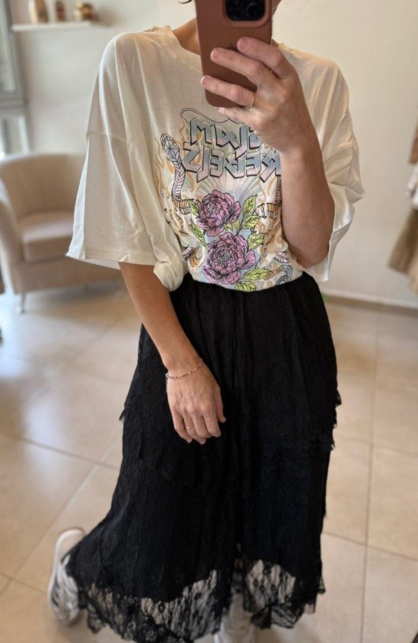 Falda de microtul con volados en aumento. Cintura con elástico. Forrada.
