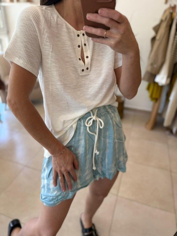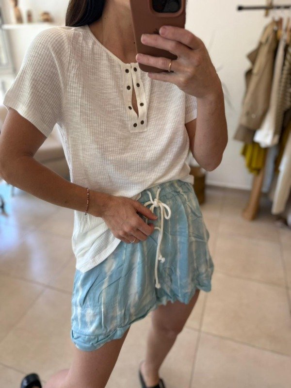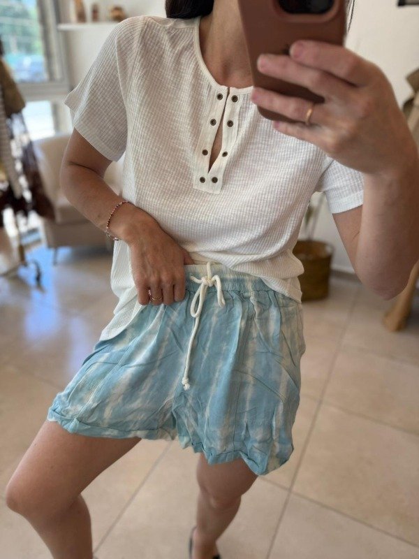 Short batik con elástico en cintura y bolsillos laterales.