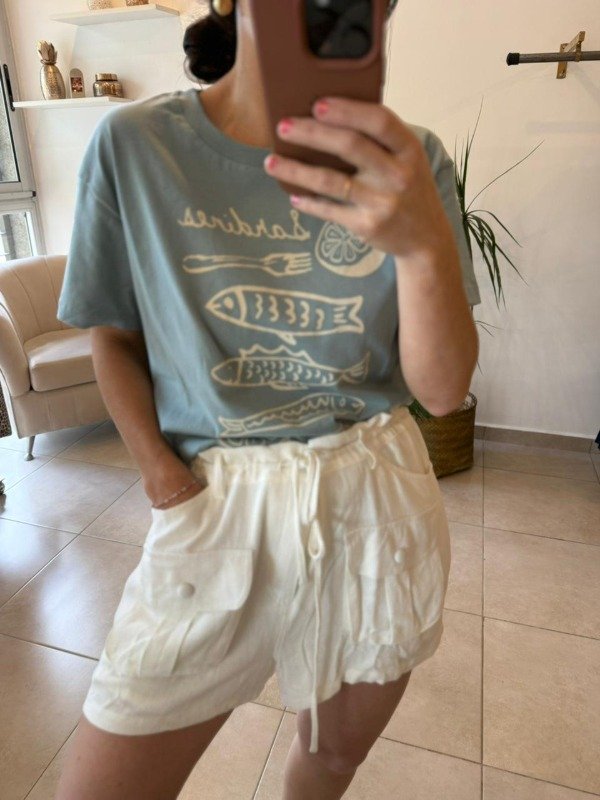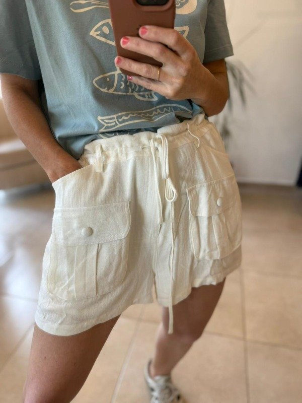 Short de lino importado. Cuenta con bolsillos laterales y delanteros. Con cordon regulable. Forrado.