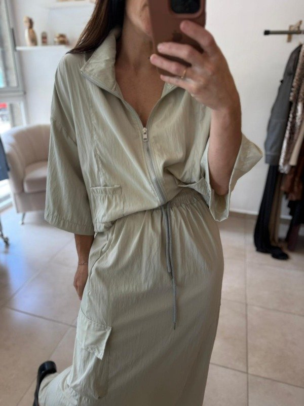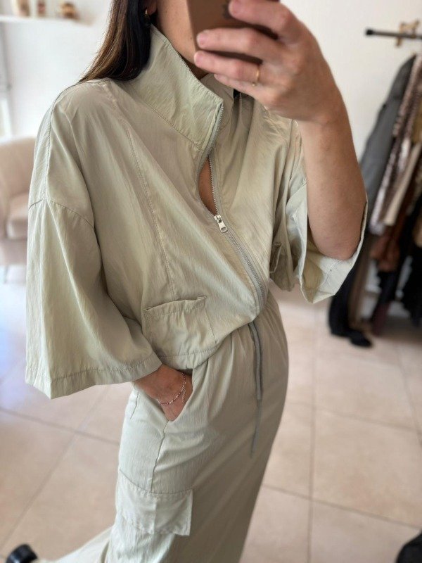 Set importado de dos piezas compuesto por chaqueta con cierre, de corte oversized y bolsillos delanteros