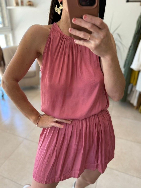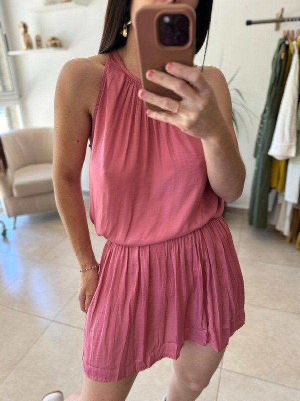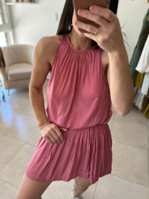 Vestido importado de escote americano. De un corte con elástico en cintura.