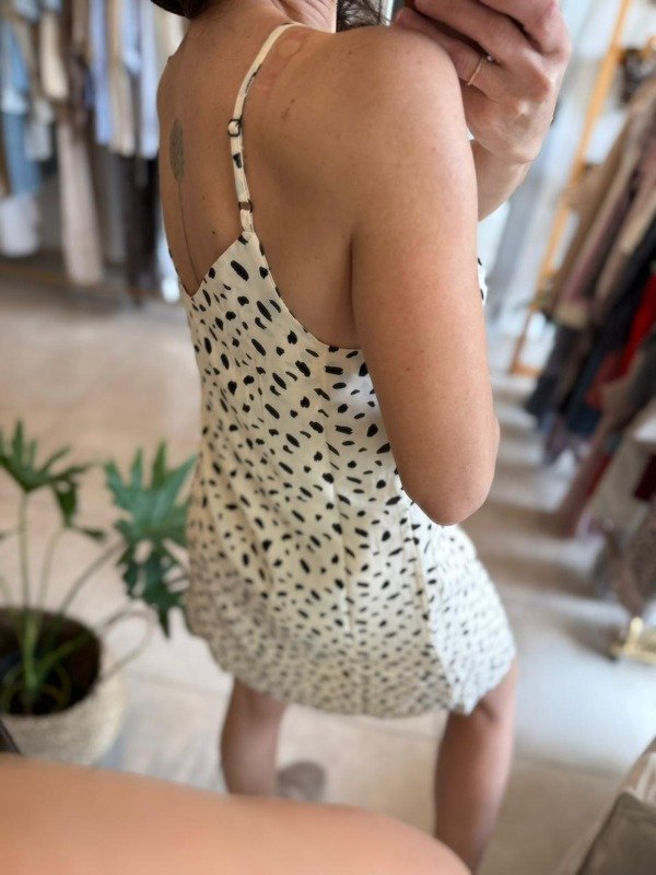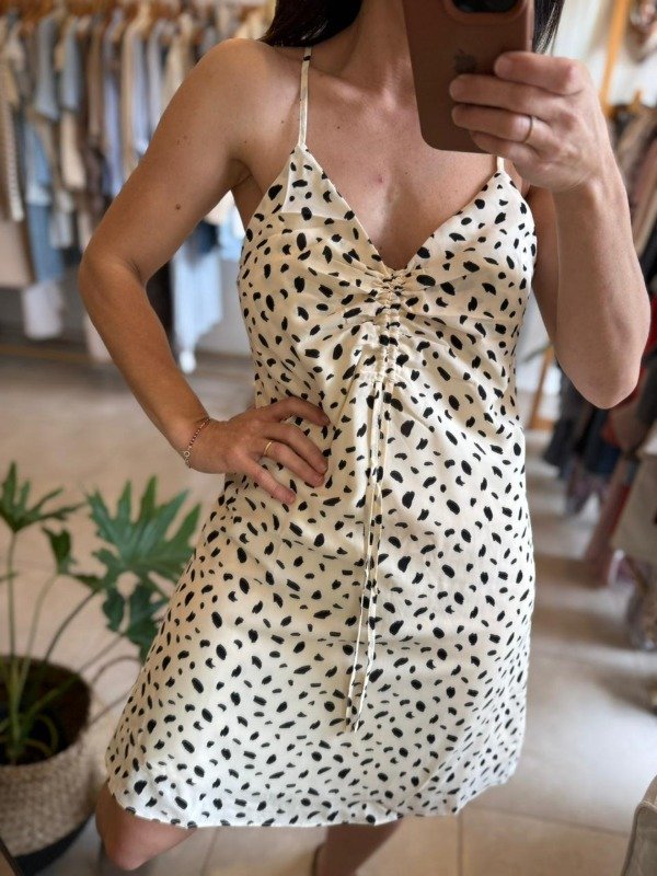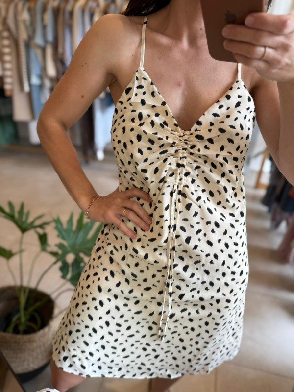 Vestido lencero estampado con frunce delantero y breteles regulables.