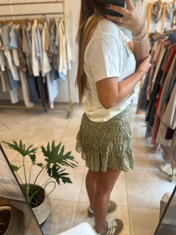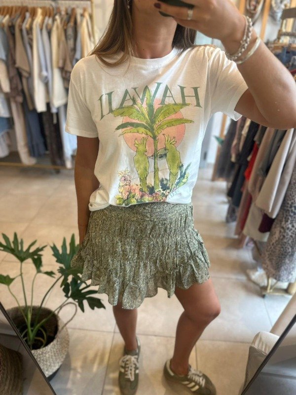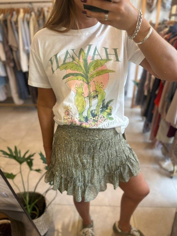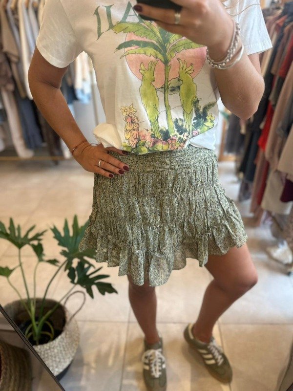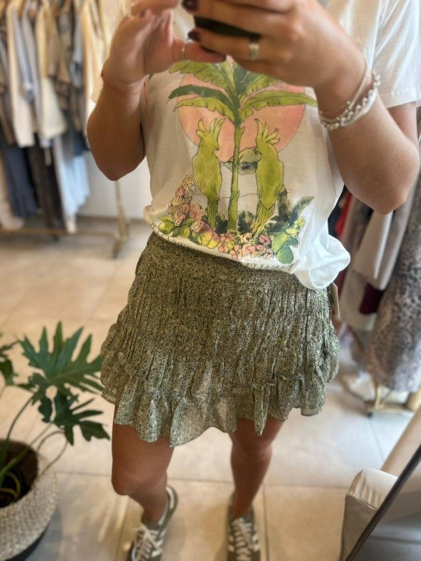 Pollera pantalón estampada con vuelos y pliegues delanteros