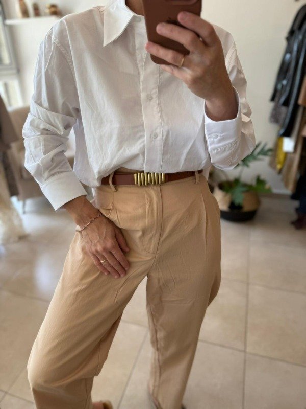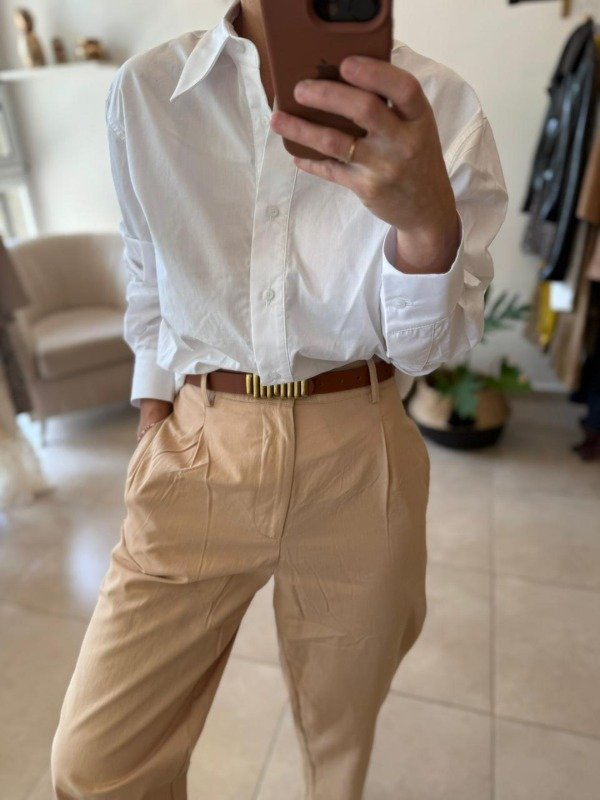 Pantalon slowchi co bolsillos delanteros, pinzas y elástico trasero.