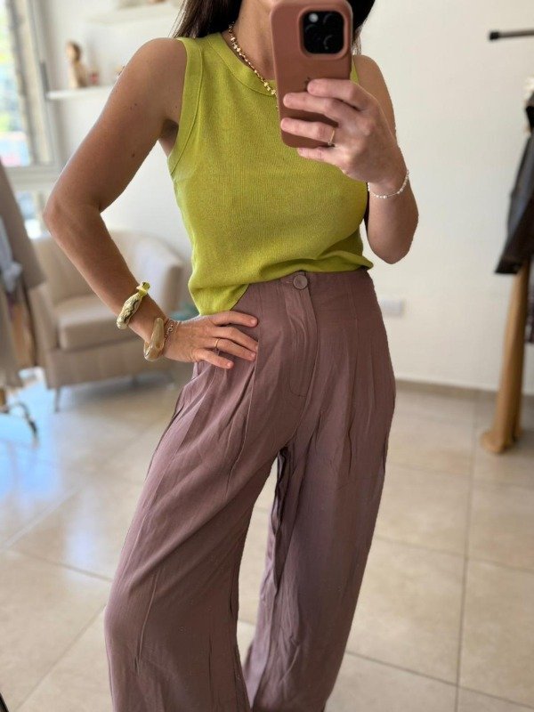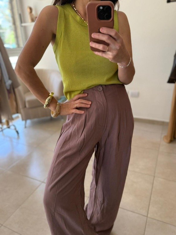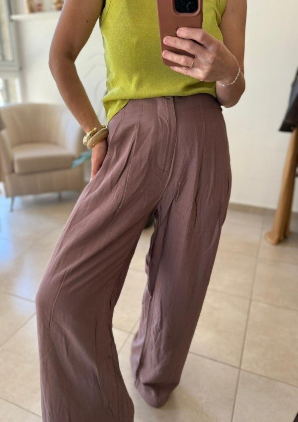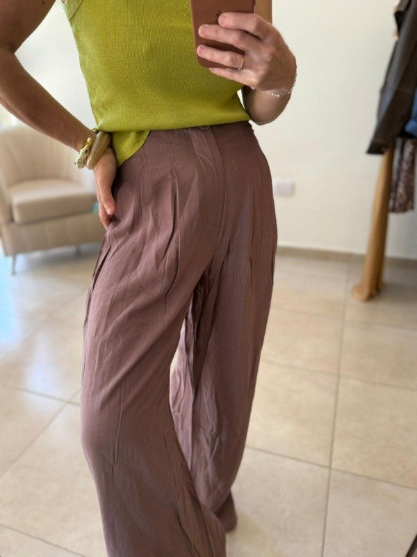 Pantalón sastrero con pinzas delanteras y cierre. Sin bolsillos.