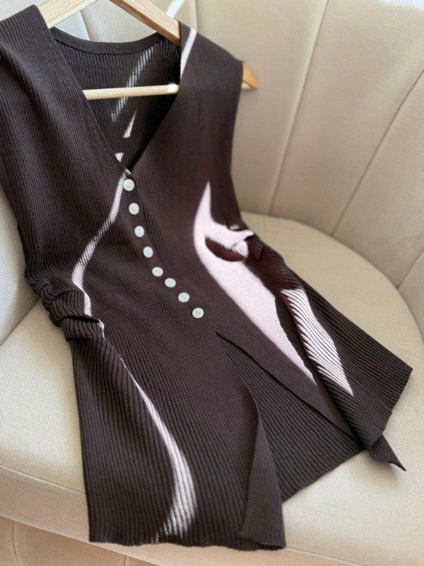 Chaleco importado con frunce en los laterales y botones en el frente.