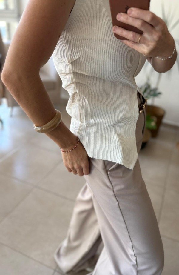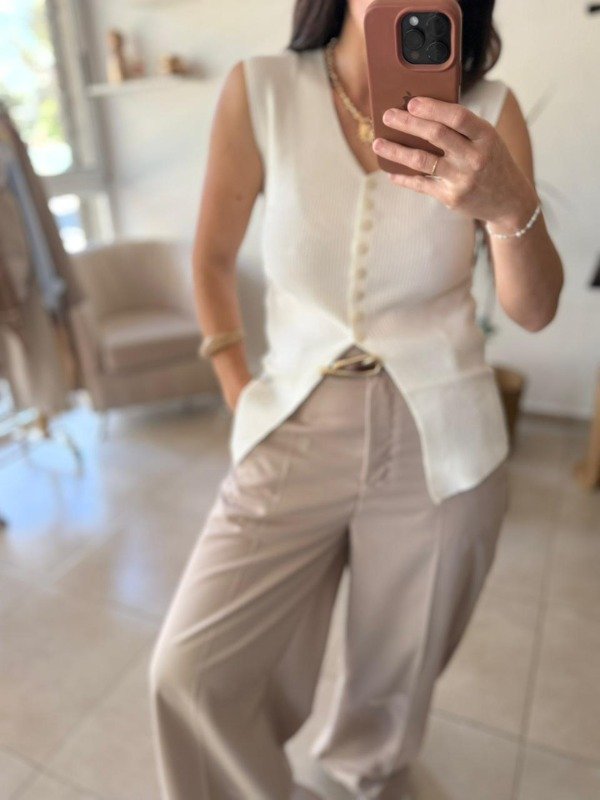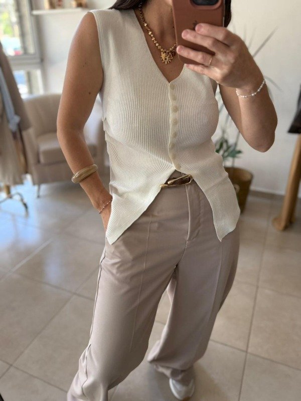 Chaleco importado con frunce en los laterales y botones en el frente.
