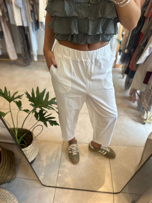 Top de breteles regulables y volados con botones delanteros y elástico en sisa.